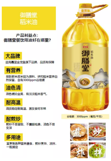 玖福团膳不断加强食品安全溯源体系,为了保障学生营养,在对战略供应商益海嘉里进行深入考核时发现稻米油的营养价值,并决定推广使用。在漫长的稻米食用历史中,人们为了追求晶莹的形态和温润的口感,对稻米进行二次碾压加工,使胚乳(白米)与米皮米胚分离,从而产生了我们的食用对象——精米。精米80%的成分为淀粉,剩下20%少量蛋白质和矿物质等。而稻米油的原料来自于米糠,很早人们使用的糙米是包含米糠的,进入精米时代后,米糠因为口感方面的原因在加工时就被剔除了。米糠是由米皮和米胚组成的,而米皮和米胚的重量只占一粒米的5%,营养却占64%!虽体积小,却是稻米油尤为核心的部分。